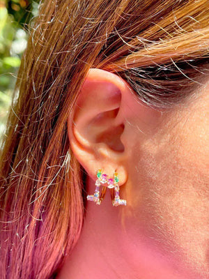 Brinco Argolinha Cravejada Colors Coração Madre Pérola